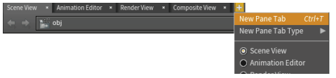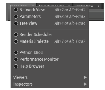 후디니 작업 공간은 패널들로 나누어져 있고, 사용자가 씬을 설정하고 탐색하는데 있어 여러 패널을 같은 영역안에 겹쳐 표시 할 수 있게 한다. 작업 공간에서 패널 탭을 클릭하면 해당 패널에 접근 할 수 있으며, 'x'를 클릭하면 닫을 수 있다. '+' 메뉴를 사용해 현재 보고 있는 패널을 변경하거나 새로운 패널을 추가 할 수 있다.